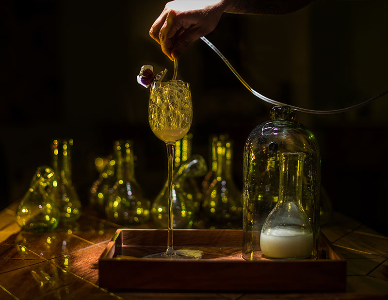 Tras una serie de procesos y técnicas que integran distintos destilados, especias, hierbas, frutas e infusiones, en Bruna Mixology Lab se crean experiencias servidas en una copa.
