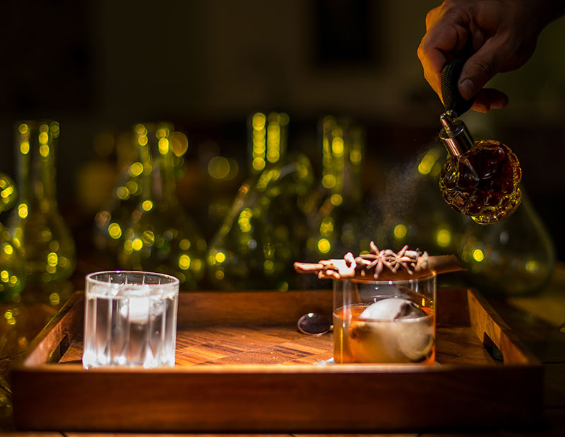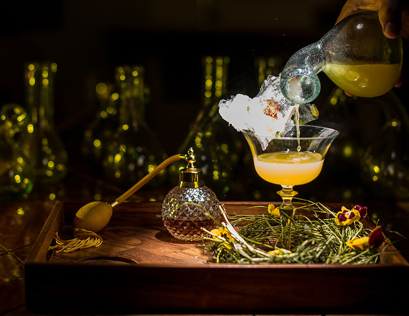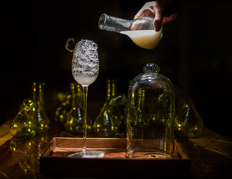 Tras una serie de procesos y técnicas que integran distintos destilados, especias, hierbas, frutas e infusiones, en Bruna Mixology Lab se crean experiencias servidas en una copa.